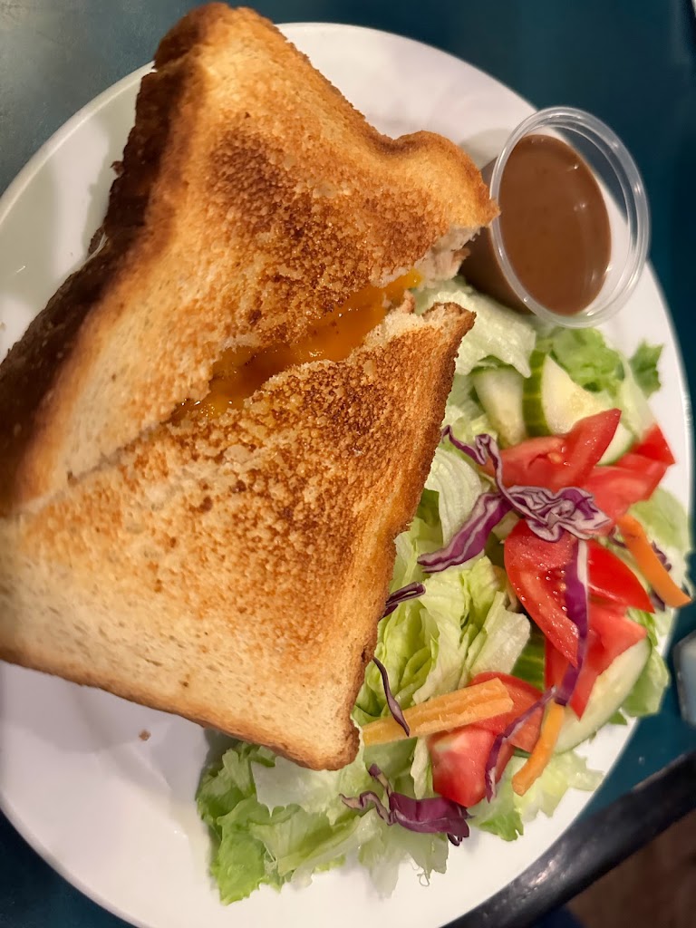 Seemed like a cool neighborhood bar to check out so we went on a Saturday night and were greeted upon entry by the bartender. She told us the only seating she had was up towards the front but didn’t offer or ask if we wanted to sit at the bar that had plenty of open seats, which is where we normally sit when we go out. We sat at a table instead like she told us and ordered some drinks from the bar. The server didn’t really know what kind of wines they had but left and came back with a written list. We then ordered a chicken Caesar salad and the grilled cheese. Our food came out pretty quick but the taste was just okay. Nothing special. The grilled cheese kind of reminded me of the grilled cheese they would make in our cafeteria in elementary school. Gave that nostalgic feeling but not what I expect when ordering from a restaurant. I’d say this place is good for some drinks with snacks and to watch the game!