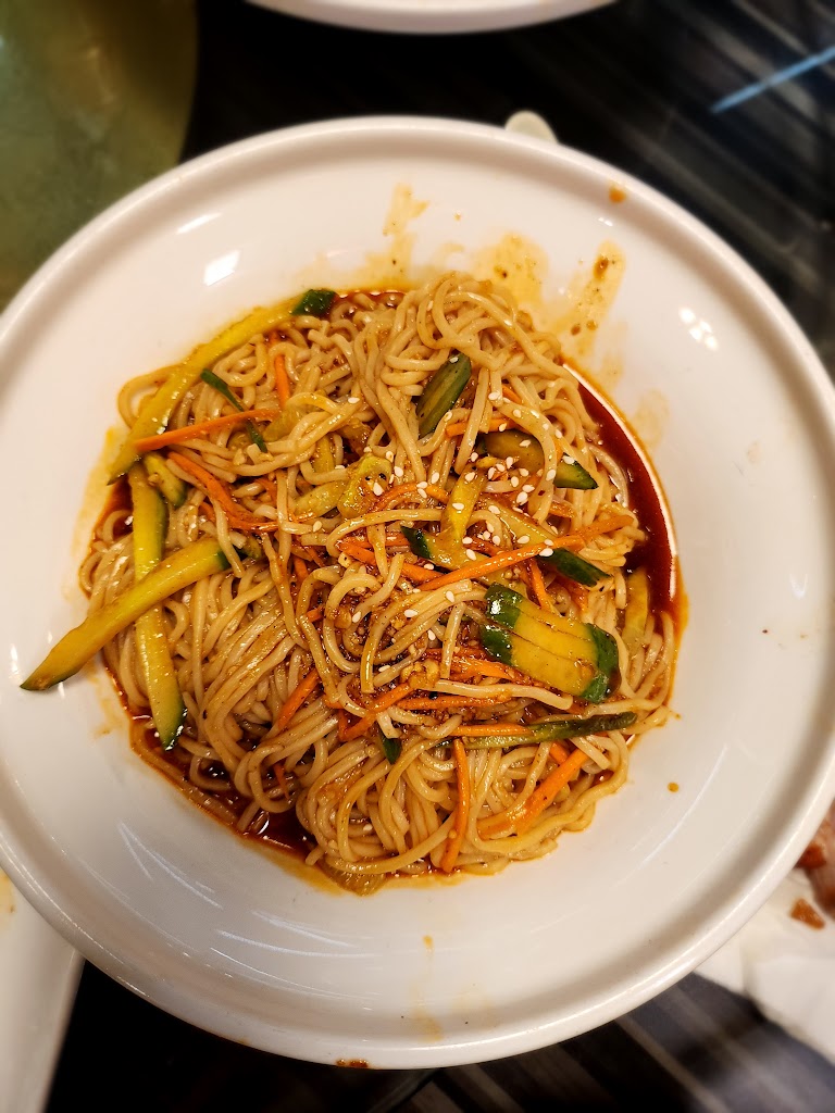 Came around 530pm and lots of table were still available, we ordered the dumpling, garlic cucumber, garlic eggplant, lamb skewers, beef skewers. Overall food was better than expected, good size portions, only downside is that it felt a bit dirty- under the tables, the boiled dumplings had black char bits all over.