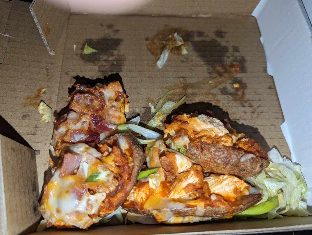 Order made at 1040 pm EST. Yep EXACTLY how my high ass got it. 😳 Dem damn taters was freakin 🤤. Eggs are tasty yet dry filled with farm animals. Potato wedges were alright same deal a bit dry. Steak fries dry as all hell no salt more like "meal filler". Wings were ordered "boneless" got regular wings. No real taste or fyah to wings. Wings were not dry nor "steroid mutant" wings. They "deconstructed" da bison samich y'all 😳😳. "Bison meat" dry has no flavor and needs a slight salt taste. Cheese bread dry but flavorful. Butter chicken not bad for bar food. I sang bombs ova Bhagdad as I blew a hole in me pants... definitely try fried tenders and pickles 🤤🤤🤤