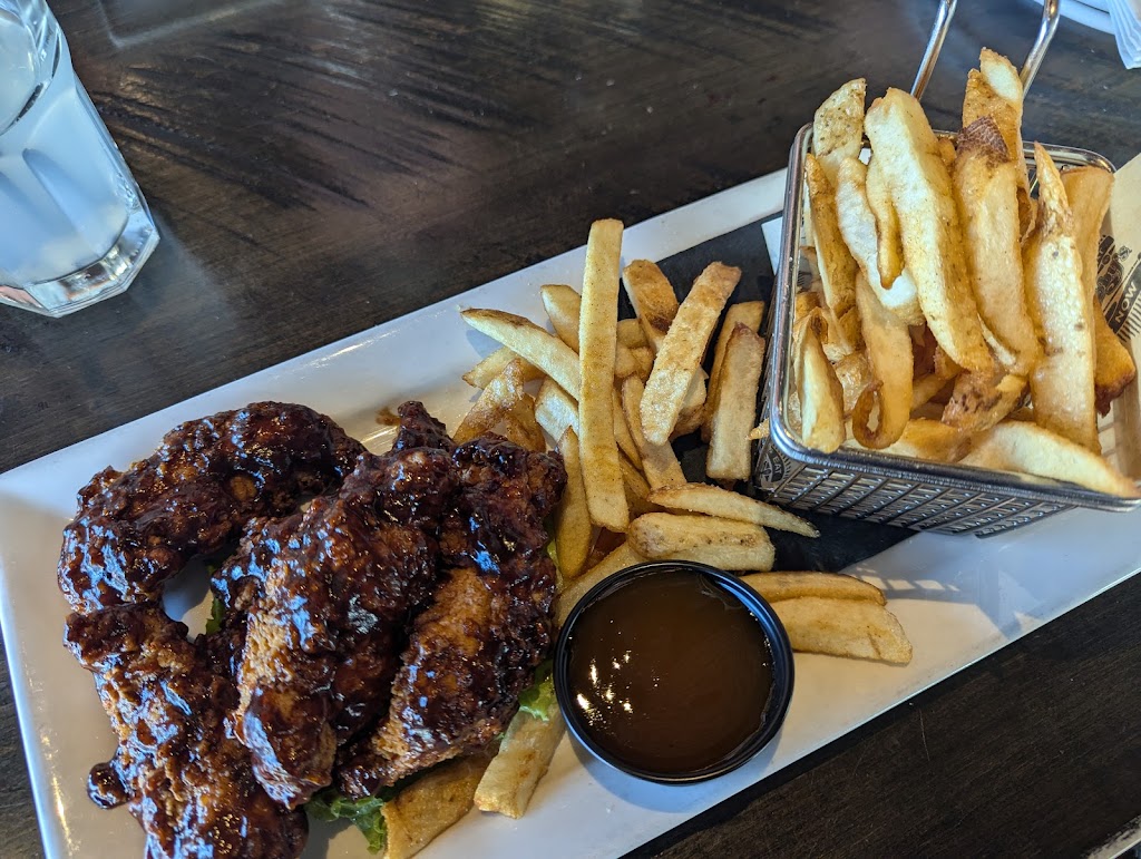The service was fantastic right from the front of the house to the server. Fast friendly and efficient. Food came out hot and fast. We both had chicken tenders with Hickory BBQ. The sauce was delicious and tangy. Fries were good but a little undercooked. A fun bar atmosphere however was a bit too loud for our liking. If you enjoy sports huge tvs everywhere. Parking was easily found nearby. Enter from inside the mall. Lots of outdoor seating but we stayed inside.