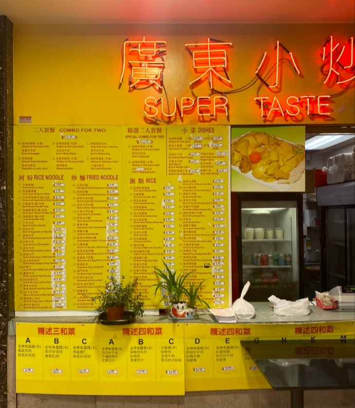 Super Taste , is local takeout place in a small food court , they are busy because they are good . Unpretentious food at a reasonable price . Those that know this place will always recommend . I recommend the beef and mushroom .