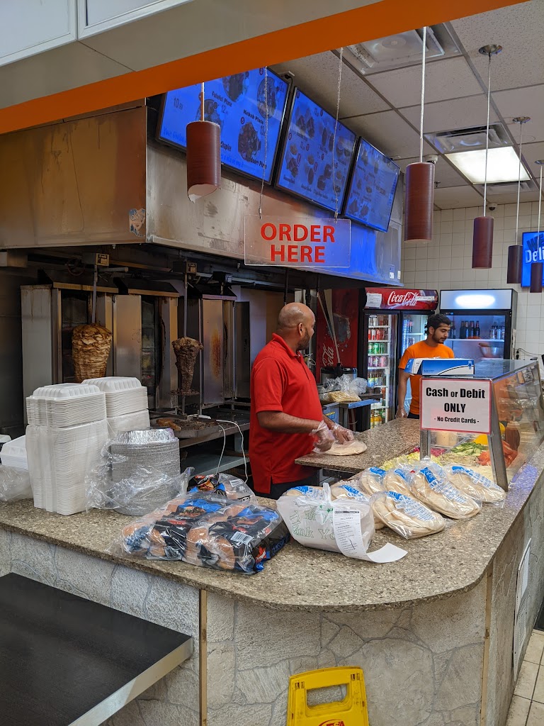 These guys are awesome here. The service is wonderful, the quality of food is delicious, the restaurant is fairly clean. I say that because unfortunately high school students frequent through here and as expected they are children, so it can get loud-ish at times when they are present! The only thing I DO NOT agree with is that these poor guys arent allowed to accept gratuities as per their leader. Thats ridiculous in my opinion because its the food industry, regardless on the Halal part. They are not begging for anything but im also not ok leaving my extra money that I wanna leave for them in that cash till! Soooooo I strongly recommend this place again because the quality and service is awesome! Parking: Depends on which time of the day you go. There is an international college next door so sometimes it may be tricky getting a spot!