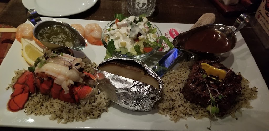 I must be really disappointed to take the time to write a negative review. First of all, the waitress was very professional. But the meals we received were really very disappointing. I took the WHOLE EARTH $58 (8oz filet mignon, 2 langoustines, 2 shrimp, 2 scallops and rosé sauce) The filet mignon and pepper sauce were hot. Everything else on my plate was totally cold. It would have taken an expert in marine biology to differentiate the 2 shrimps from the 2 langoustines, the 4 being smaller than my little finger. My wife had the 3 shrimp skewers. His entire plate was cold counter temperature. She asked to have it reheated and she got a lukewarm plate. And the shrimp tasted nothing, and the garlic butter only subtly tasted a little bit like garlic. The rice (and I love all types of rice) tasted a certain spice as if the whole pot had been dropped in it. Lesson learned: when the dining room looks like an old 19th century saloon, dont expect anything better from the kitchen.