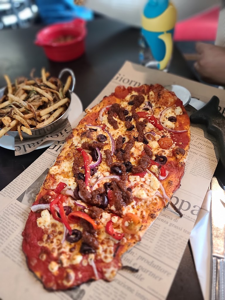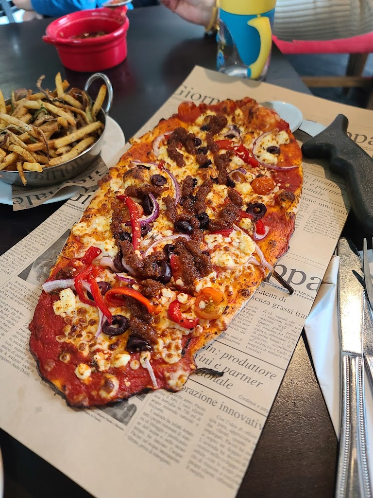 It's a very nice pacini. Pasta and pizza aare good. Service is efficient. Sparkling water in cool. Cooking and eating your own bread is a very cool experience.