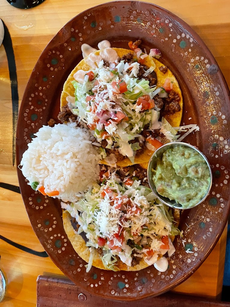 The tacos were exceptionally dry, the enchiladas small. Service was decent, but nothing special. Very small and very loud. I feel it was over priced for what we got. We were half finished our meal and were asked to move tables if we wanted desert as they had a large party coming in. If possible, do not take yoir own car. Parking is horrible! We had to park at a restaurant next door.