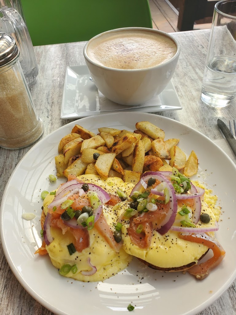 A true hidden gem. We came all the way from Montreal to visit a nearby winery and was searching for a cute brunch place to start of our day. The staff here were all super welcoming, especially the man server, super nice and respectful. We ordered 2 oat milk lattee and a Benedict “Pécheur”. Food was very tasteful especially the potatoes. I would prefer a traditional english muffin as the Benedict base rather than a old burger bun but to each their own. Downside was that the bun was very oily. Besides that, I would highly recommend this cafe! Would definitely come back.