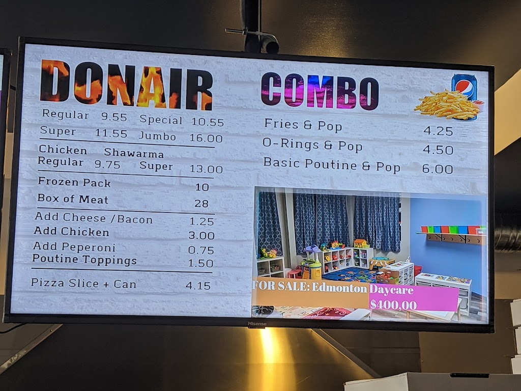 Awful. Only wanted to serve me donairs since they were “easy” and was annoyed I would suggest ordering anything else. Started serving people that were behind me because I ordered pizza which was too difficult. Very slow and unfriendly. I really enjoy several Donair places across Edmonton and area, but this is the last one I would consider purchasing from.