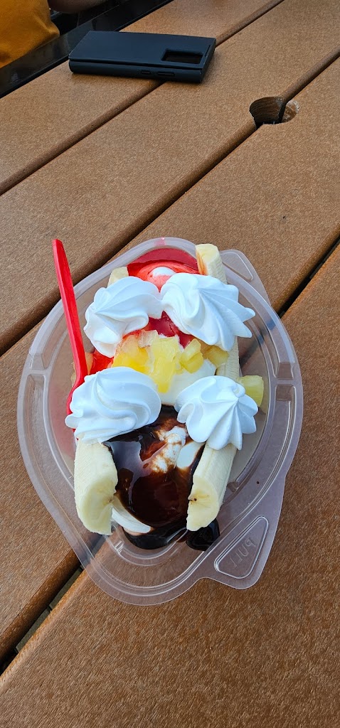 Ice cream is always half melted the second you get it it’s literally soup lol. A lot of dining tables. Drive through is very slow. I do love the location and the patio. Over all it could be better.
