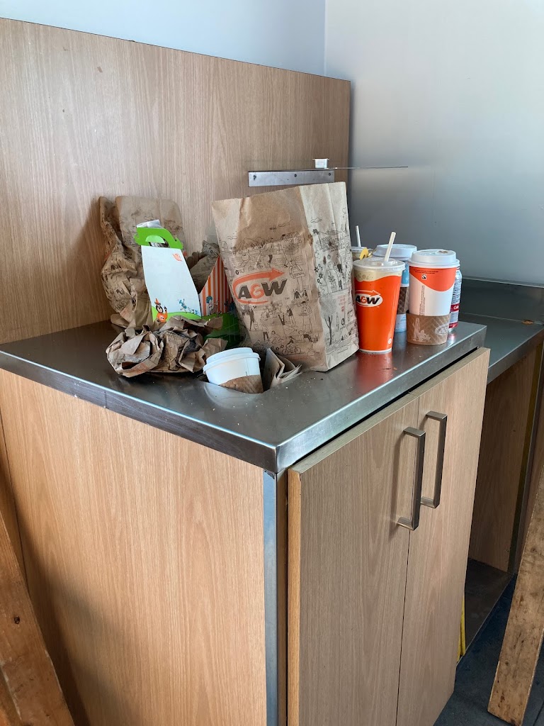 Got some food after a camping trip, and went to get a burger, I ordered 2 double buddy burgers with cheese and 2 hash browns, I didn’t realise until I was half way done the second burger that the bun was covered in mould… doesn’t seem like they care much at all about the food quality here. Sucks because I really enjoyed A&W and will most likely not return, if I do become sick within the next few days I will be returning for further action.
