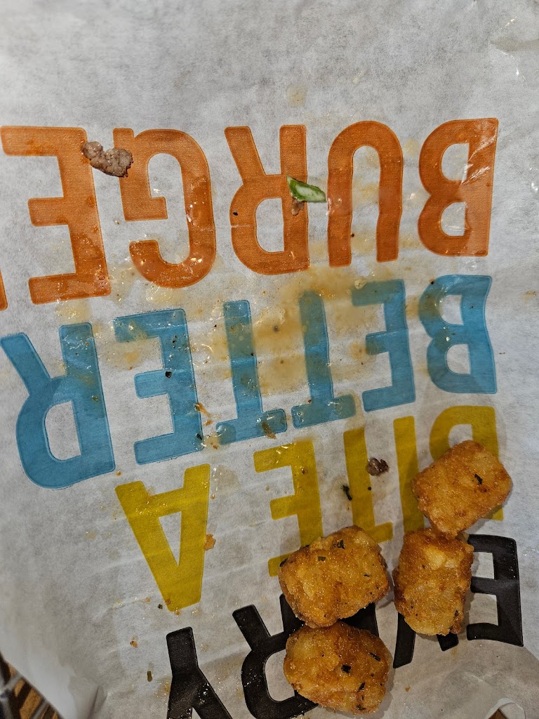 The Burger was good, but better are available. The seasoned tote were mainly just greasy flavored.