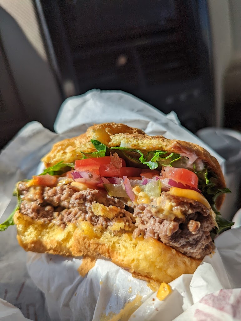 Grease filled food, I got a double smash bacon burger It was so Greasy that I had puddle of it on my tray. I had the smash tots which also greasy and not worth price. My daughter had the crispy chicken burger hard dry and greasy. Sweet potato also just as greasy. I ate my burger because I was so hungry My daughter took to bites and couldn't Stomach it. We got a refund for her meal. Also they charge Individual prices per item. No combo And when I asked to get a refund I was given attitude. Not worth it don't go.