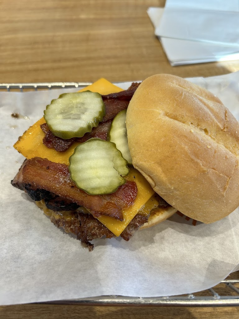 So, my wife had the Single Bacon Smash. She said it was bland. I had the Double Mushroom Swiss. Mine was also bland. They both looked nice, but that was it. I didnt finish mine. The fries were good.