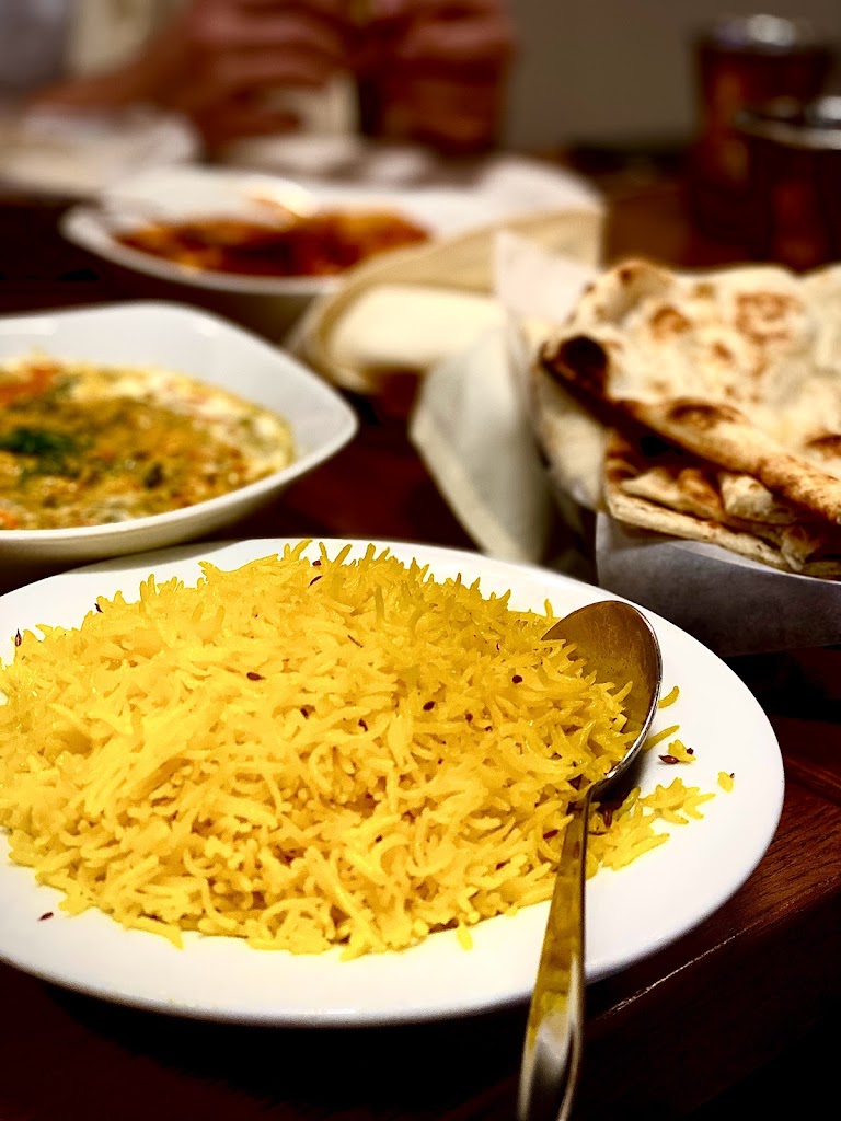 Wow! Some of the best Indian food I have ever had! I can't say enough good things about this place! Our waiter was super helpful and made our time there so enjoyable. The portions were big and they did not skimp on anything. The beef kebabs were absolutely unreal! We will definitely be getting that again next time! We also got the butter chicken, chicken curry and chicken tikka masala. The chicken pieces were big and juicy and we loved them all! The coconut rice was to die for and more than enough for 2 people or more. But wow the garlic Naan, the butter Naan and the stuffed Naan was absolutely delicious! It's obvious they definitely know what they are doing. I also have to mention that their water glasses were super cute and quality, it made the experience wonderful! I can't wait to come back!