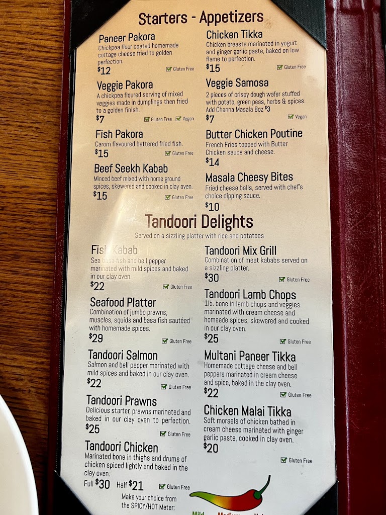 As I walked into the restaurant, a delicious aroma was in the air. I asked Shubham (manager/owner I think) what was that aroma. He did a sniff test in the air and said Butter Chicken. I said okay, say no more, thats what Im getting. I got the Butter chicken Hot with garlic naan, butter naan and mango lassi as takeout. My goodness, it was so delicious. The portions are big but I couldnt help myself. I finished it in a day. I just kept craving it. I used my naan to lick every last drop of the butter chicken. Honestly, I wouldnt have thought the best Indian food in the Edmonton area is in St. Albert. It was so so good that I couldnt quench my craving. I had to order again the very next day. So delicious!!