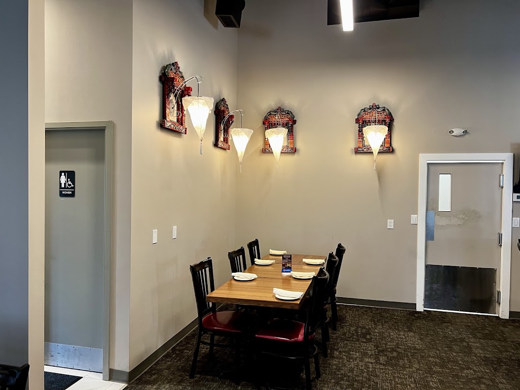 The staff were friendly and welcoming, the new location is really attractive, and the food was AMAZING. I had the tandoori lamb chops with veggies, rice, and potatoes, with a side of garlic naan. The lamb was some of the best Ive ever had and Ive been craving more since. My friends had a variety of other things - butter chicken, lamb korma, and the chefs choice platter. Every single dish was wonderful! We will be back, and likely often! Vegetarian options: Indian food always has the best vegetarian options, in my opinion. Thats true here as well. Parking: Its in a new strip mall complex, tons of parking.