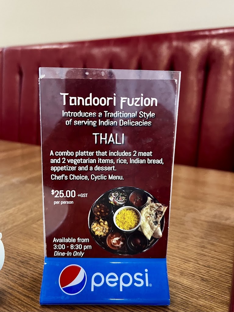 The daughter and I went to Tandoori fusion for lunch, she got the go to butter chicken, I got a full order of tandoori chicken. Good stuff, big portions, good flavour. Giving them 4 instead of 5 because they have Pepsi instead of Coke.