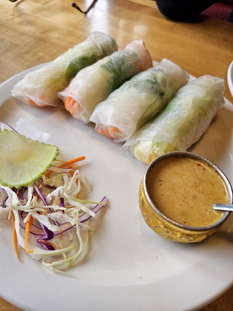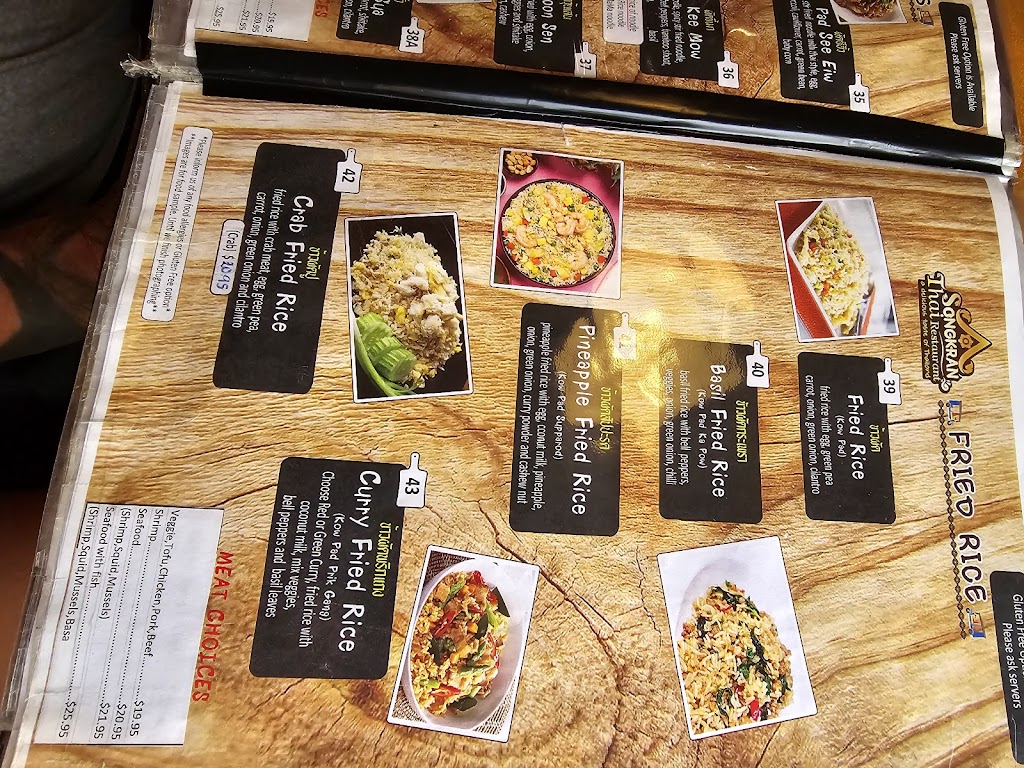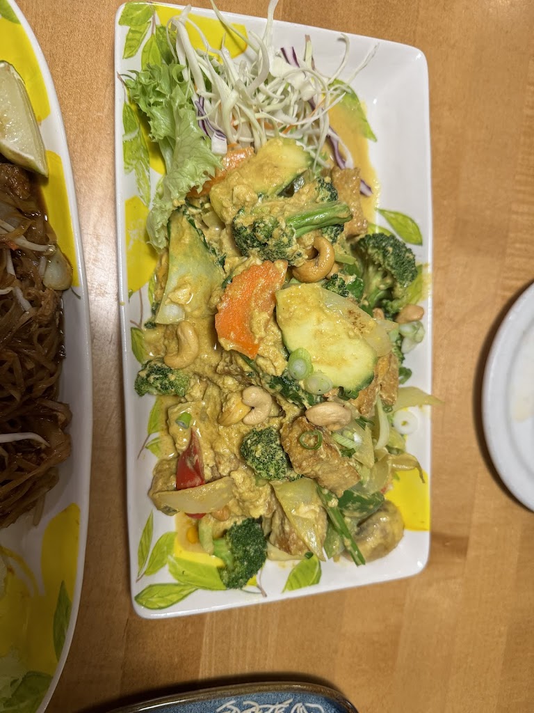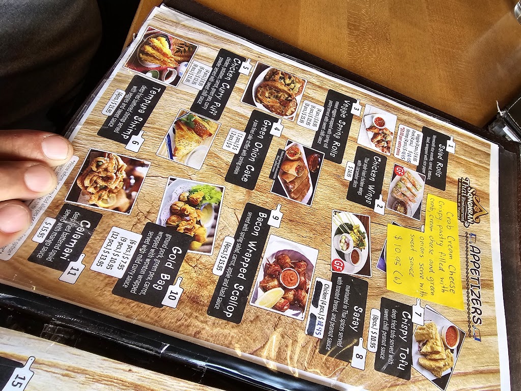 Hidden gem. They had so many options, it was hard to chose. The categories on the menu were arranged nicely in appetizers, soups, salads, noodle and rice dishes. The price with meat/seafood was at the bottom. The atmosphere was nicely decorated with a cozy vibe, little outdated but still nice. The service was okay, not the greatest English speakers, but worth the visit because the authenticity of the food. They had cute Thai aluminum dishes. We ordered the salad rolls to start, the peanut dipping sauce was amazing. As well as the pad Thai with seafood and chicken curry vegetables with a side of coconut rice. They were reasonable portions and flavors were amazing. We had leftovers to bring home.