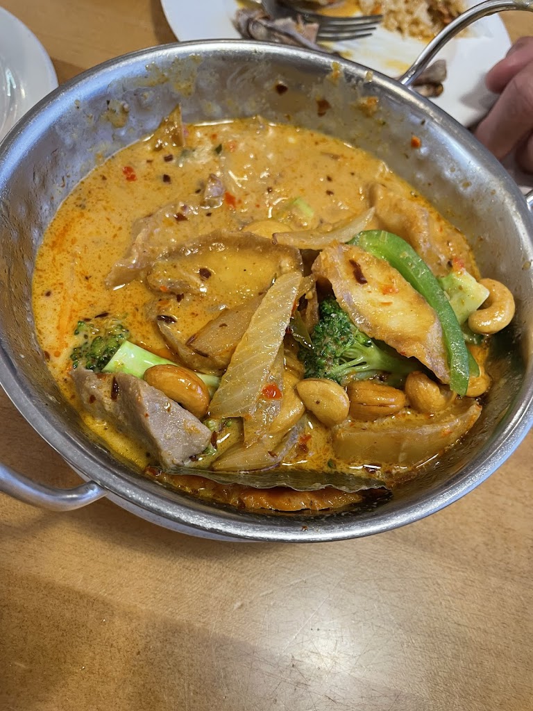My go to Thai restaurant. The the wait staff and chef provide a friendly and casual atmosphere. The food is delicious. The first photo is Pad Thai Tom Yum. The sweet and sour combination from the tom yum and the tamarind makes the Pad Thai Tom Yum delicious. I love spicy food so I request Thai hot 🌶️ That kicks it up a notch. The portions are generous. The pork stew masaman curry was also delicious. It was the daily special. Pork chunks with pan fried potato wedges and broccoli garnished with cashews. The pork was fork tender. The curry was delectable and perfect for smothering on rice .