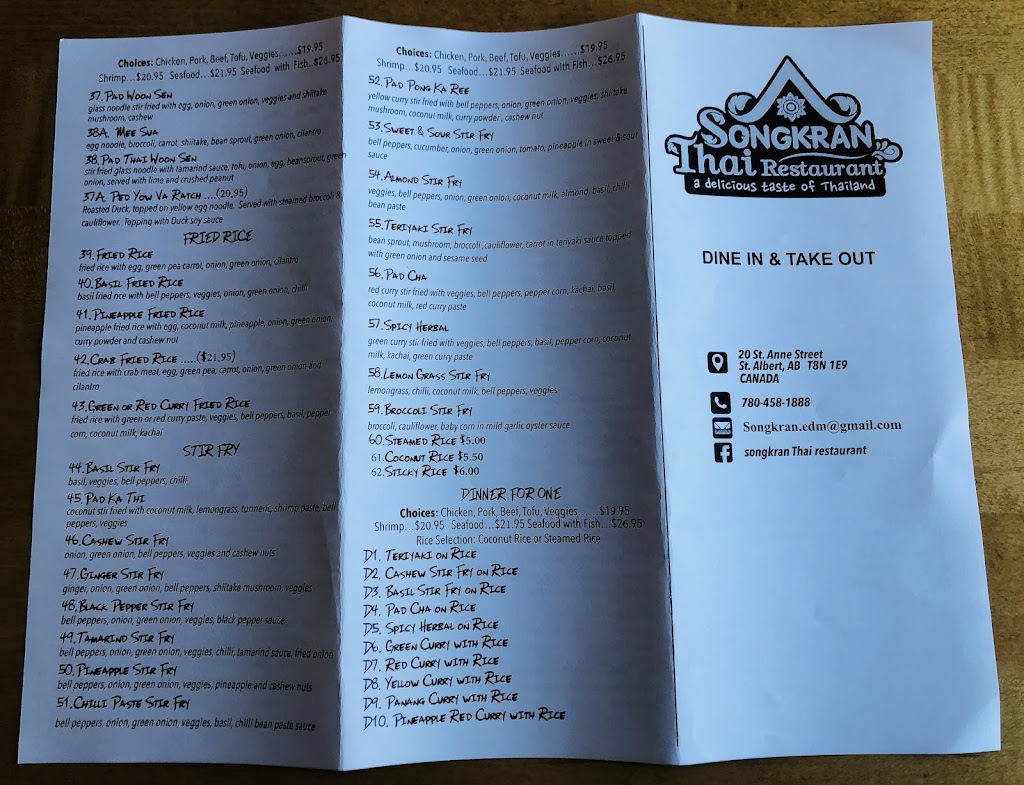 I used to absolutely love Songkran. My absolute favourite restaurant in St Albert. Unfortunately, after Kanya passed, it seems lots has changed. I ve been three times and was so sadly disappointed. What I would give for her pad Thai recipe. It s really sad as this restaurant used to be outstanding. I m still going to try a few more selections off their menu and see if I can find a few reasons to keep going. I wish all the best to the new owners as the shoes to fill are massive.