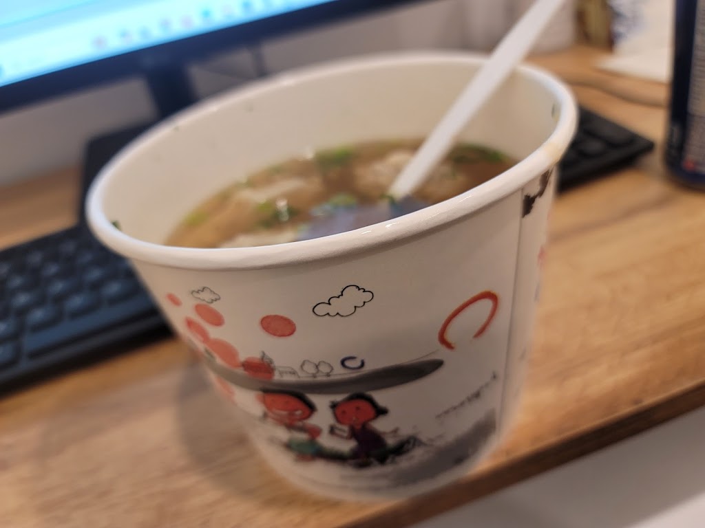 I had an amazing order of wonton soup that I ordered for pickup. I was alittle worried when I noticed I didn't have any packets of soy sauce added but upon tasting the broth it was absolutely delicious. Highly recommend you try it!