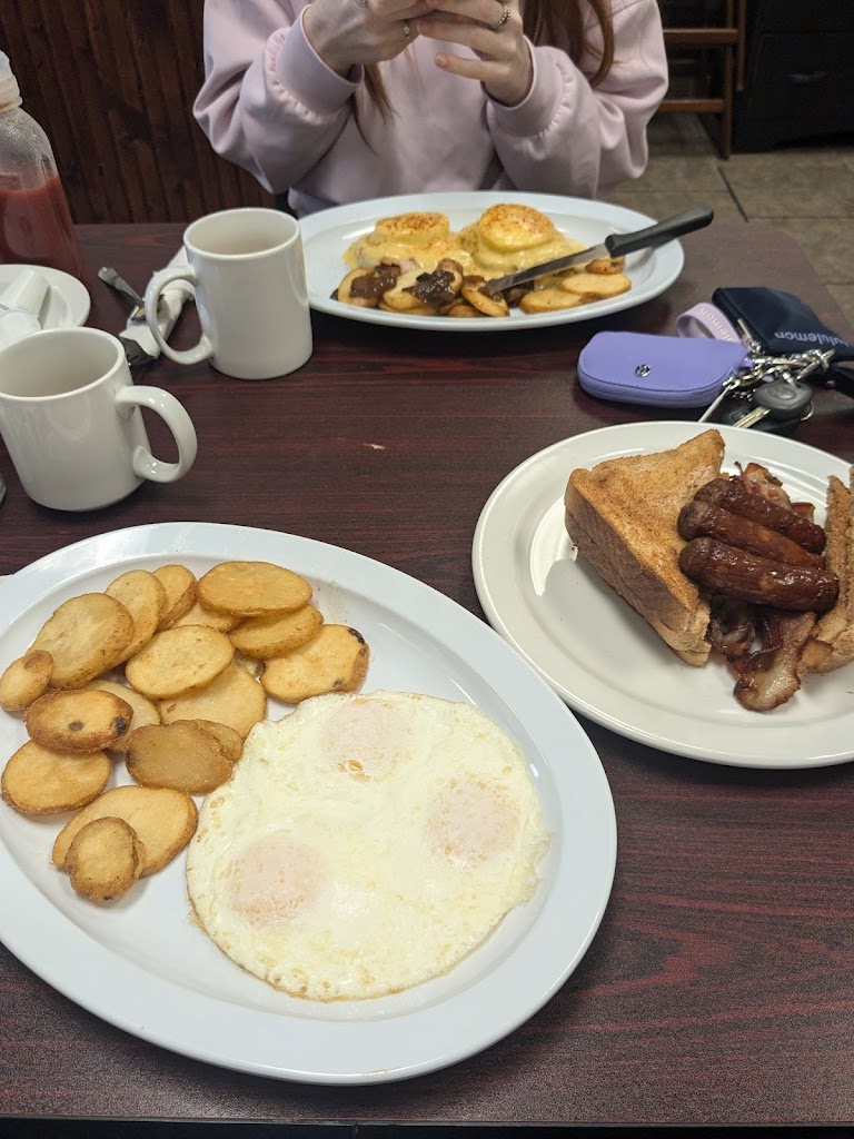 First time trying food from here after driving past it for years. I ordered a skillet for takeout; usually my go-to at a breakfast place. They were happy to take the meat out for me which I appreciated, but I was disappointed that they didnt make it up with more veggies. It ended up being a pretty small amount of potatoes and veggies, and my over-easy eggs were served pretty hard. Not saying I wouldnt give them another try, but the price compared to the portion was a let down for me as a big breakfast lover. Please give your vegetarians some love with some extra veggies when taking away something from the dish!