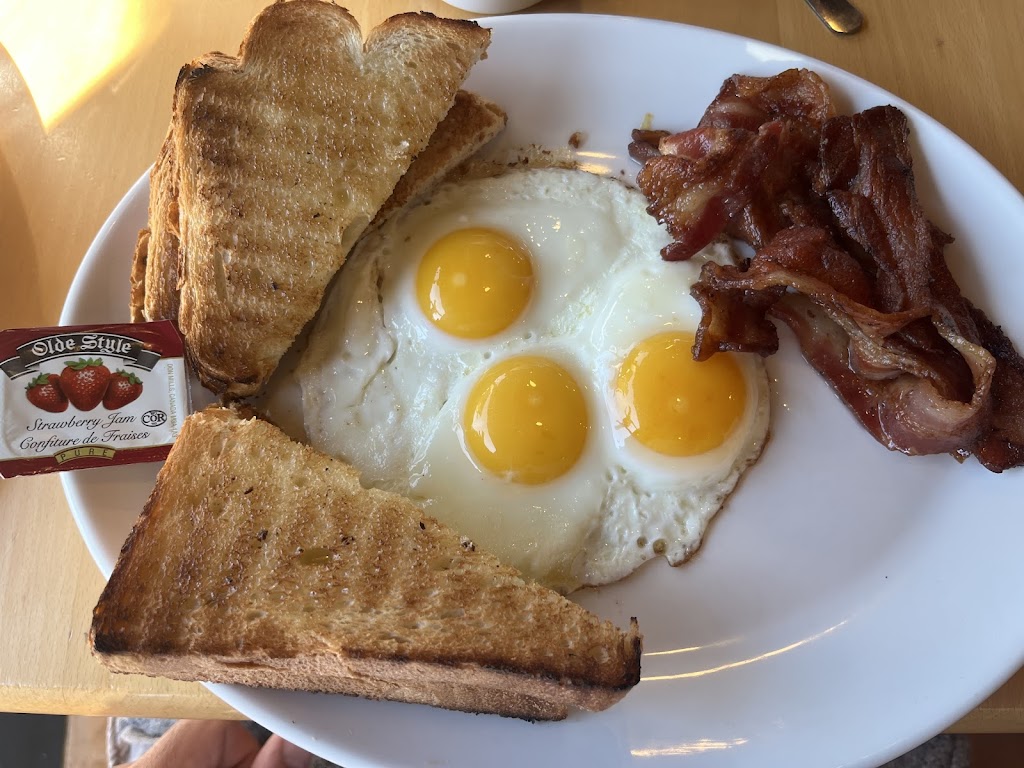 Had breakfast...crispy thick bacon yum yum eggs pancakes and yummy home fries. Very good value for the money.