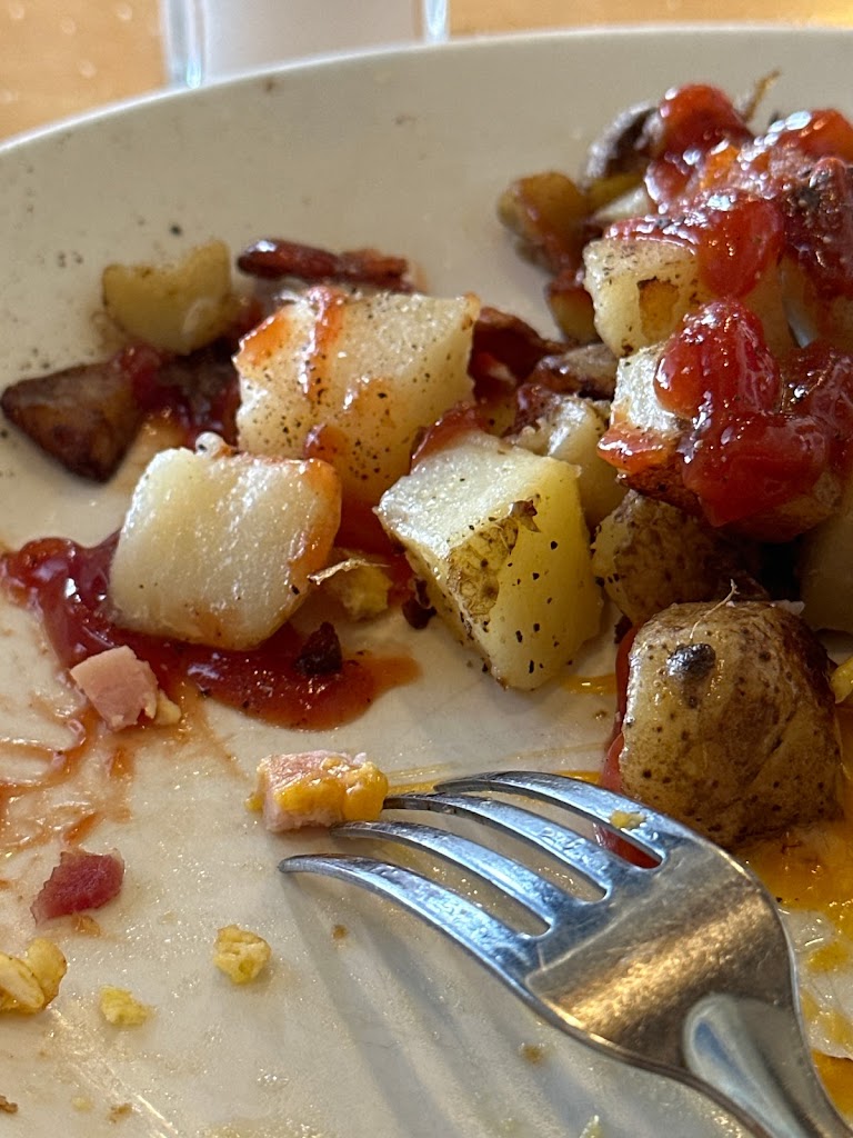 Bacon and eggs were good. Potatoes were fried only on one side and cold on the other side. Coffee was plentiful, but terrible. Parking: Lots of spots nearby.