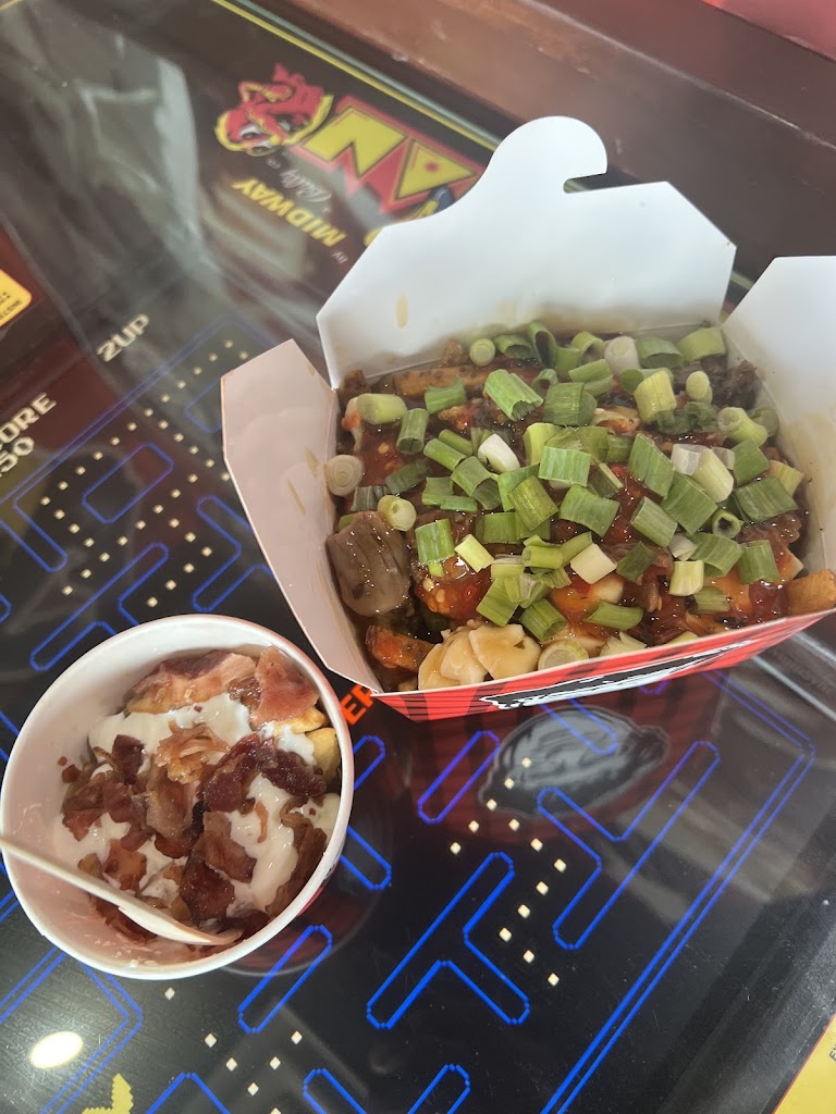 Great atmosphere with fun Pacman tables and 80s rock playing! Unfortunately after that the service was disappointing, had to ask for my drink (at a pick up counter after having paid) and was told to wait as my food was being fixed. Then I got the pleasure of getting up from the table to get my food as I was the only customer in the place. Way to earn your tip! When I did get to try the $18 meal sized poutine, (it was hot and hot enough to melt the cheese curds, which saved them a little) it fell flat with the fries themselves being either somehow slightly undercooked ( blanching issues?) or slightly stale. Either way, to fail with fries is not good for a poutine place. Also the gravy seemed thin and lacking in any real flavour. I wont be back.