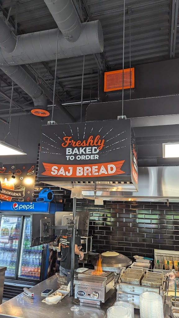I can understand the hype given all the cool and consistent branding but food was lacking to say the least. The shawarma doesn t taste good and it felt undercooked. The saj bread was thick, and gummy/dense. Not how saj wraps should be. We couldn t finish the wraps and when we got home we felt sick.