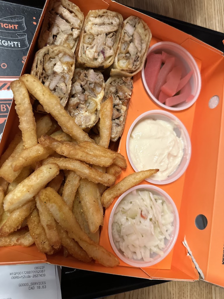 Food was great. I only ask that the beef get warmed up a little bit more. Our wraps were warm and not hot enough so you could feel the grease when you're chewing it. Otherwise, the flavour was incredible. Thanks for the free Churros which was kind of random coming from a Shawarma place. Definitely going to check out the other locations. Cheers!
