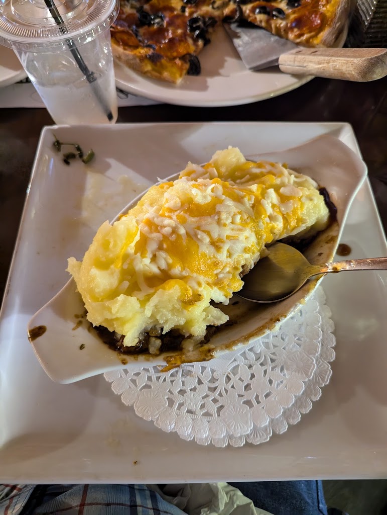 We enjoyed a pizza and fish and chips. The server was friendly and efficient. Although it was busy the service was timely. We will return.