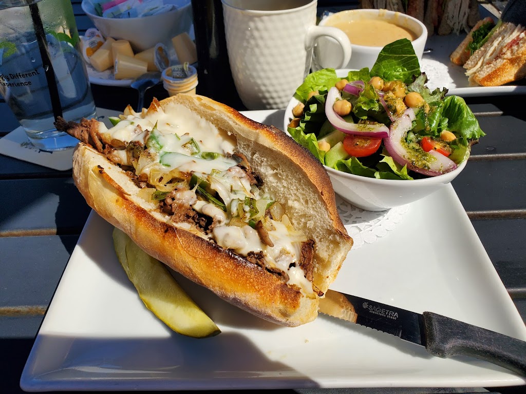Visited for a late lunch yesterday, Labour Day. Sat on the patio, which is a fenced off area of the parking lot. (Dog friendly) lots of space between tables. Server was good, ordered coffee ( a little weak, but tolerable) water (not tolerable) turkey club with soup, Philly cheese steak with salad. Food was excellent. Sorry, no picture of the turkey club, oops.
