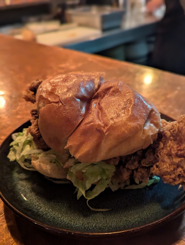 Really enjoyed having their fried chicken sandwich - sitting right at the chefs bar was great because the food was being made right in front of us. The space was cozy and intimate & the service was really friendly and welcoming. Ill be coming back again for sure.