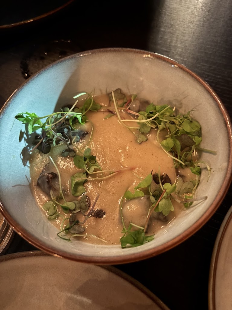 Amazing food with very creative pairings. Cocktails also excellent! Music is late 90 s rap which was a bit weird. But who cares the food was bussin! Food : 5/5