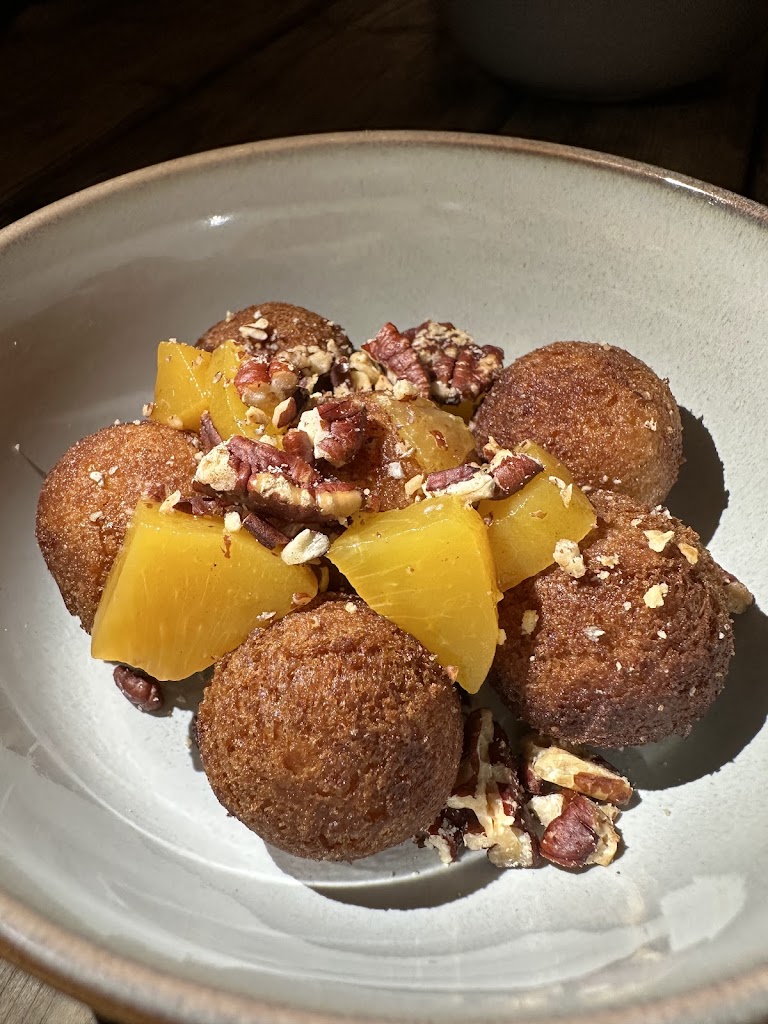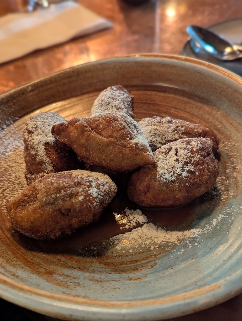 "Wow! What an incredible dining experience! The ambiance was fantastic, the service impeccable, and the food absolutely delicious. The Nashville fried chicken sandwich was astonishingly good, and the oysters were fresh and flavorful, complemented by an array of 8 delightful sauces. We also tried the beef tartare, which was expertly prepared and absolutely delicious. For my birthday, they surprised me with Pumpkin Fritters with cinnamon, caramel, and powdered sugar. I'm not usually a dessert fan, but this was perfectly balanced in sweetness—a real treat! If you're a foodie, this place is a must-visit. Highly recommended!" Oh.. sorry for the broken frame. My bad