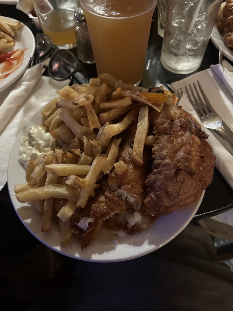 Best Cod fish and chips I ever had. Great service. Good beer too! Food