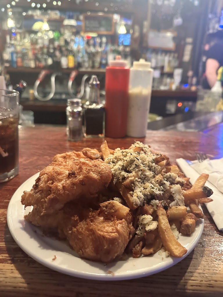 Get here early in the evening if you want to grab a spot in order to eat, this place is a must so it was busy! I had the fish and chips with dressing and gravy and it was a big portion and one of the best fish&chips I’ve ever had. Incredible fish and batter and dressing, great gravy, got a few drinks from the bar, amazing dinner. They squished tables in and still had people waiting but it was a great atmosphere, and my waiter provided great and quick service. Definitely will be back on my next trip.