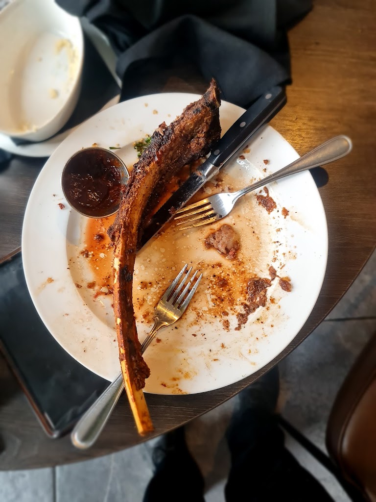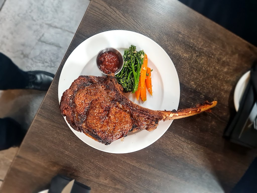 Shared a tomahawk with my son and it was exceptional! Wife had the bison, and loved it. I ll definitely be getting that next time around. Tried the bone marrow and beef tartare as apps. The bone marrow was very tasty, quite rich, definitely not something to over do it on. Tartare came with a lot more than expected - plenty for 3-4 people to try. Service was top notch. Manager even came out to chat about the gin that was in one of our drinks. All the staff were friendly and attentive but not overbearing at all. Atmosphere was very nice. Plenty of space so you don t feel crowded by other guests. I ll definitely be back.