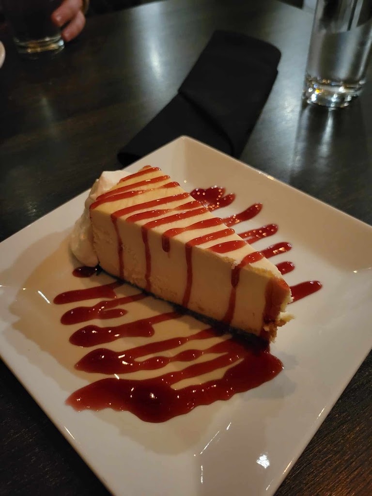 Not a good experience dining in for supper. We had a table of 5 with a bill of almost 600 dollars. Out of the 5 meals one person was satisfied and the other 4 had a bad experience. The appetizers were ok. The spinach dip was nice. French onion soup tasted burned and charred. The table bread (which should have been served regardless and not as a 4 dollar charge) was enough for one person not so much a table. The burger was okay but the patty was dry. 3 striploins with all the same complaint, which was charred and burned on the outside with absolutely no seasoning. The mac and cheese sides were ok. I upgraded to a loaded baked potato which was an extra 6 dollars and struggled to cut through the old overvalued skin. Even with a steak knife it was difficult to cut. The deserts were the best part of the meal. Apple crumble, red velvet and Italian cake, cheesecake and sticky toffee pudding were the only saving grace to the meal. Unfortunately, they ran out of sticky toffee pudding so only one of us could get it after ordering. Our waiter was nice and service was quick. One of the waiters came to take some plates before desert and the overwhelming smell of cigarette smoke turned most of our stomachs. Even as they walked past several times it overwhelmed us. Overall this was a truely regrettable experience. Especially while celebrating 2 birthdays and spending such a large amount of money on a meal.
