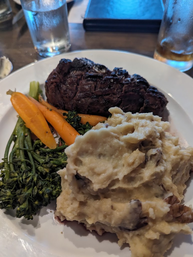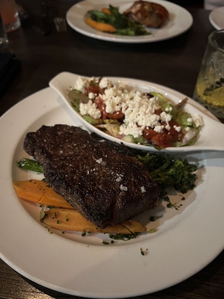 Honestly, its a nice spot, the wait staff is super friendly and competent, but you would think the kitchen would know how to cook a steak, particularly at the price point theyre asking. Our table ordered three steaks, and each came out overdone. Carrots were, paradoxically, underdone. For a steakhouse, thats a bit sad, Id avoid this place or order something other than steak.