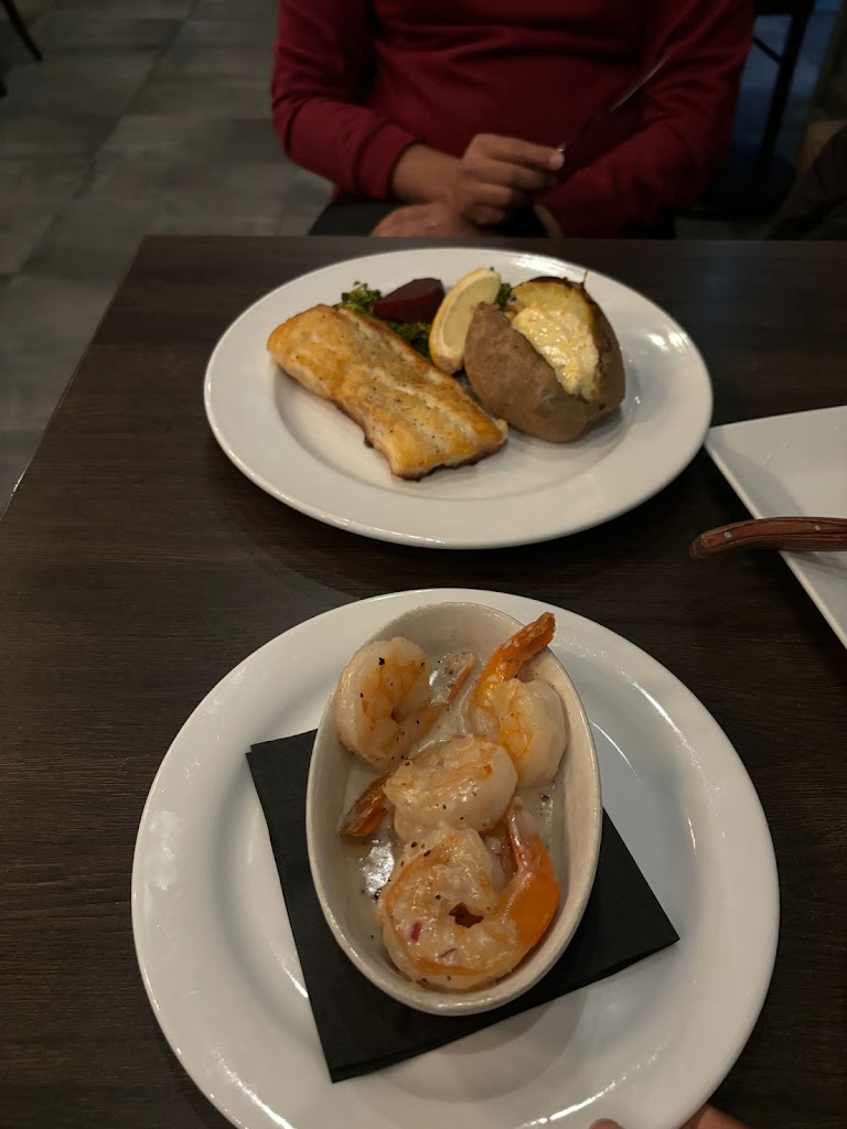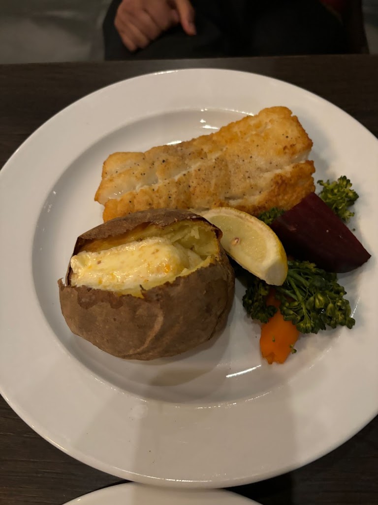 It was flavorless and expensive, not a good combination! Ordered the pan seared cod fish, it had zero flavor. It was missing salt and pepper, and the lack of a sauce didnt help since it was dry. Also ordered the loaded bake potato, which was unseasoned and dry on the outside, which made it hard to eat. The inside was pretty good but still disappointing since the outside was dry and hard. The potato was also listed alongside the rest of the side options, so I assumed it was a regular side; another mistake, I was charged $6 even though it wasnt listed as a premium side on the menu. With how poor it was, that was infuriating. Salt and pepper were available at request for the tables, but the server was too busy, so I ended up not waiting. That was a mistake.