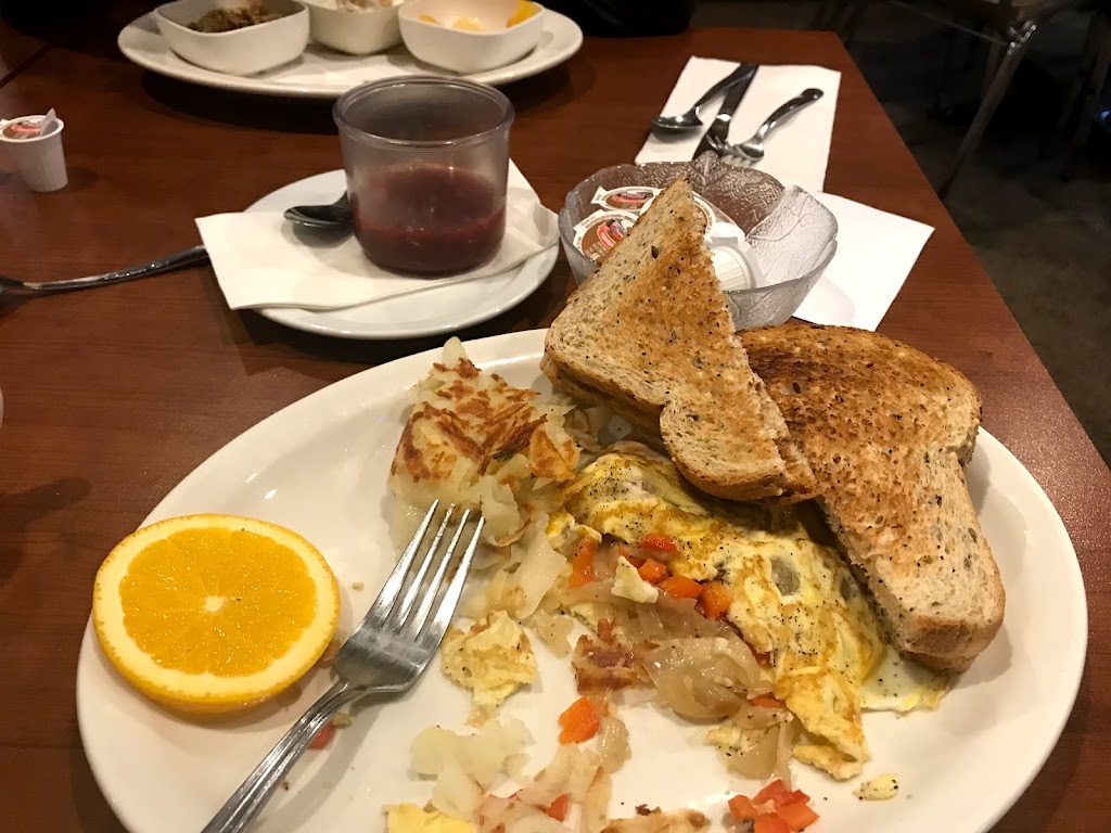 Excellent homestyle breakfast this morning! Farmer sausage omelette was perfect.