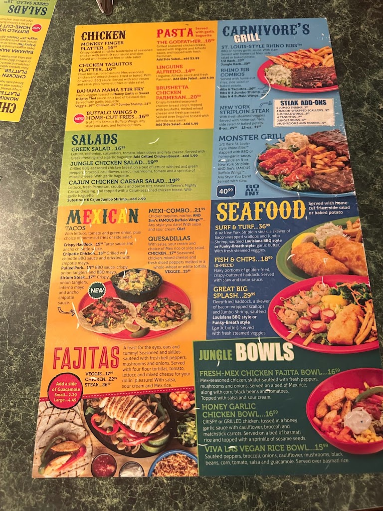 The food at Jungle Jims is top-notch, with flavorful and well-prepared dishes that never disappoint. Whether youre in the mood for juicy burgers, tasty sandwiches, or flavorful seafood, their menu has something for everyone. The portions are generous, and the presentation is visually appealing. What sets Jungle Jims apart is their commitment to customer satisfaction. They prioritize the needs and preferences of their guests, accommodating special requests and dietary restrictions whenever possible. The staff is knowledgeable about the menu and offers helpful recommendations based on your preferences.