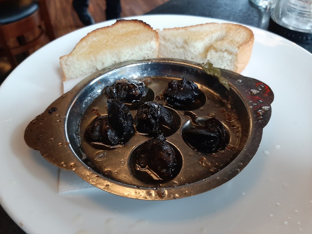 1) I got 2 orders of escargot and it was by far the worst my husband and I have had. It was completely black with parts melting off, the taste was extremely bland and lacked seasoning. It had the texture/appearance/taste of the ones in a can. 2) The garlic bread was also quite charred, tasted burnt and was way too oily. Will not be ordering from, nor be coming back to this restaurant ever again