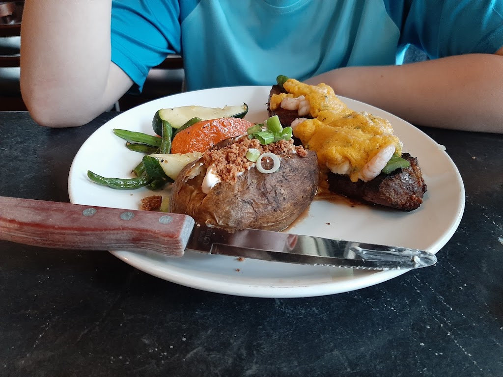 Prime rib was so thin, dry and way overcooked. Same went for the salmon Oscar. Baked french onion tasted good, but it was like the cook just sprinkled cold cheese on top of soft bread in the bowl of soup. Best thing we had was the side of rice and the soft drink.