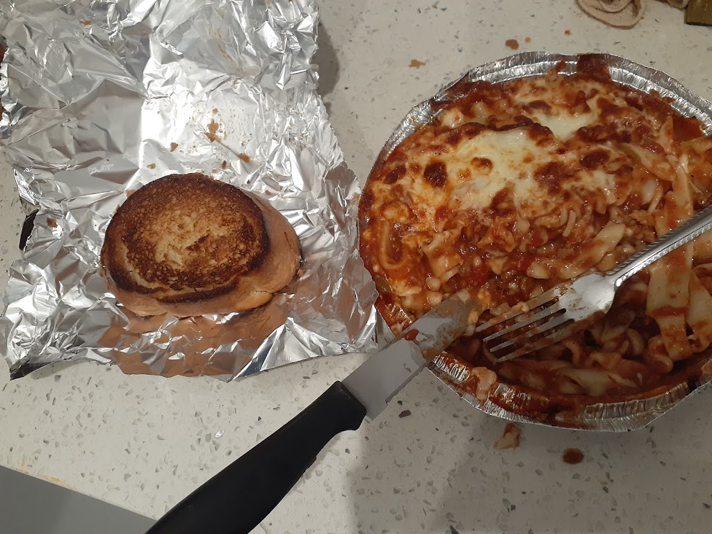 The pasta I got was pretty bad. The Alfredo sauce was curdled and it just tasted pretty awful all around. The bread was fine but it was really thick for some reason.