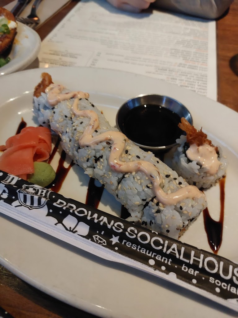It was my first time visiting browns social house with my friends .Loved the chill vibes and atmosphere. The music sounded so good and casual . We had ordered loaded nachos , butter chicken and as for the lettuce wraps we substituted the kung pao chicken with kung pao cauliflower and it tasted so good that it blew my taste buds . The portion sizes were so big that one or two dishes are more than enough for 4 people . The service was outstanding and the server was so sweet to accommodate are needs. 10/10 for both food and service.