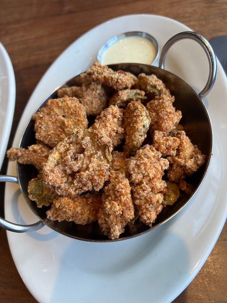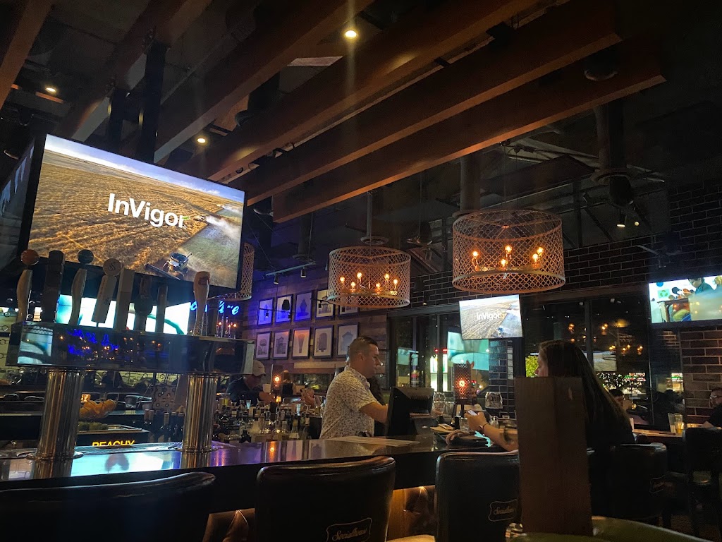 Upbeat environment, especially Friday and Saturday evenings. Friendly staff, delicious food. I like the fettuccine alfredo with blackened chicken, crispy cauliflower, nachos, Pub and Hollywood burgers. The crispy chicken burger looks amazing! There is a Beyond Burger vegetarian option too. Oh! And the warm brownie?! YUM! Music is decent, patio is wonderful on a warm afternoon or evening. There are heaters outside in case it gets chilly. Some good deals for social hour and the Caesars (drinks) are delicious! Beer is nice and cold. Plenty of parking available. Great place! 5/5