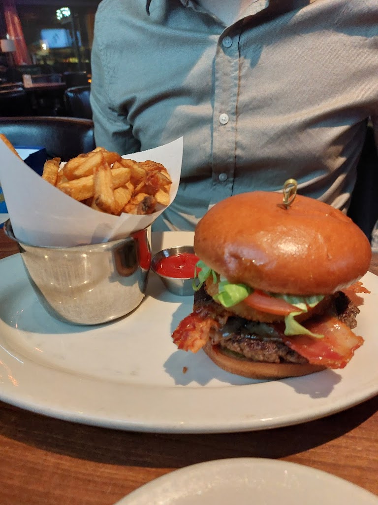 So packed in here it was amazing. Atmosphere was fantastic. Had the Hollywood burger. Omg delish