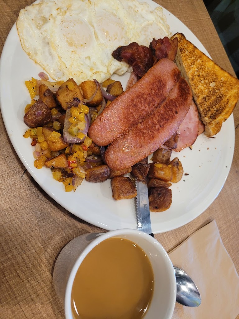 Arrived for breakfast and only three tables occupied and we were seated right away. Coffee was delicious and delivered as we received the menus, then about four other couples arrived within five minutes. It didn t impact our continual service and our food came out quickly and was delicious! Heidi is a Superstar, always smiling and very welcoming, can t wait for our next visit to Swift Current! Parking: Well light and paved